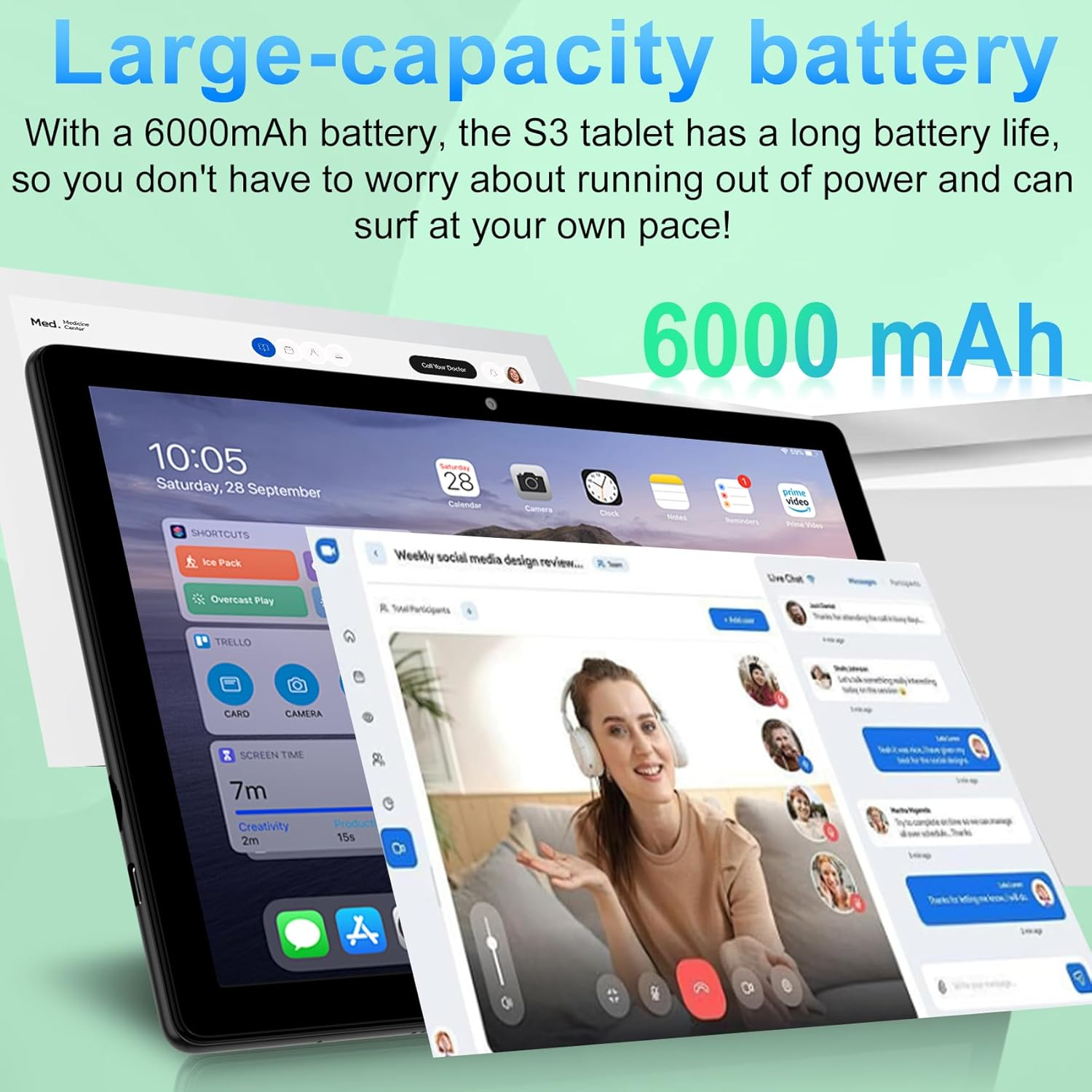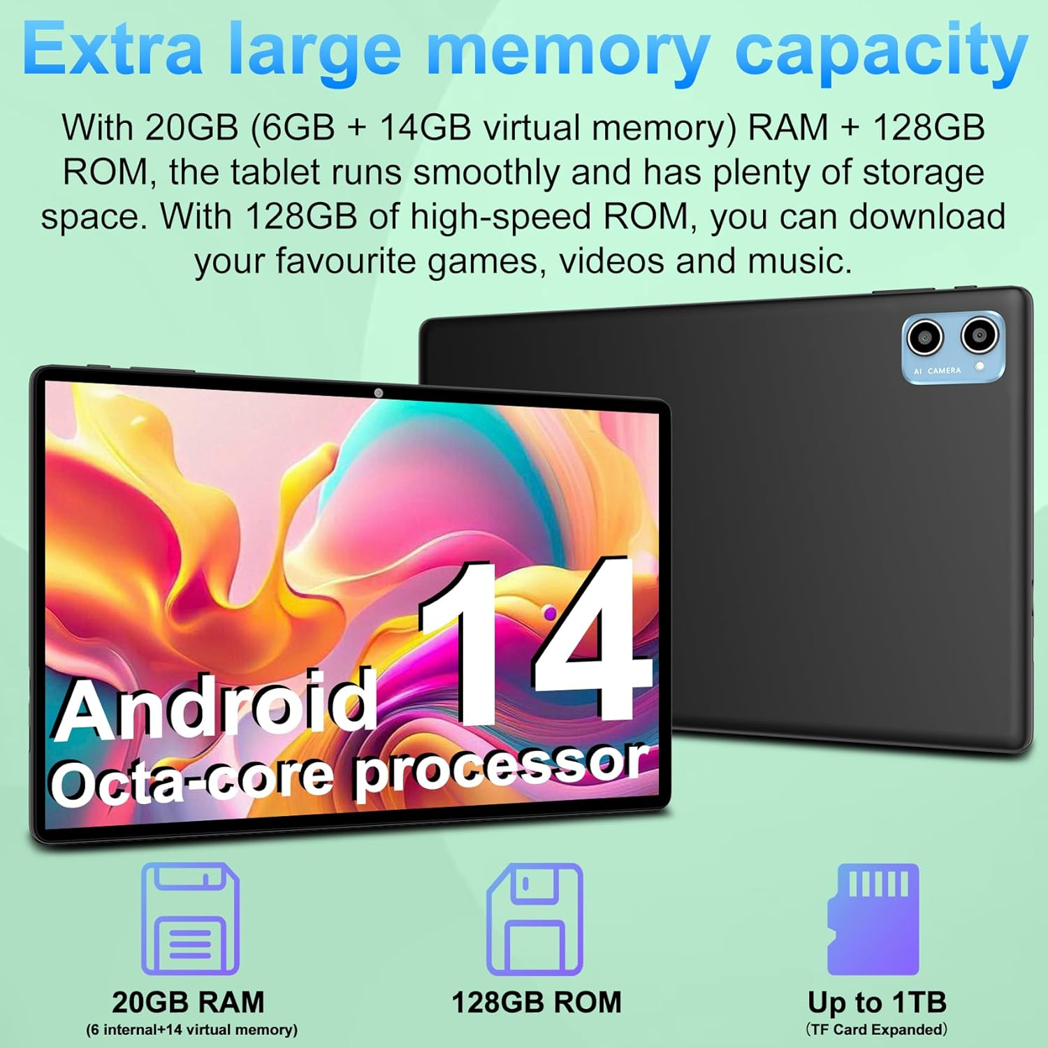 TOP CONFIGURATION: This tablet comes with 20GB RAM (14+6) and 128GB ROM, expandable up to 1TB, a 5MP front camera and an 8MP rear camera for easy recording of daily life and clearer video calls