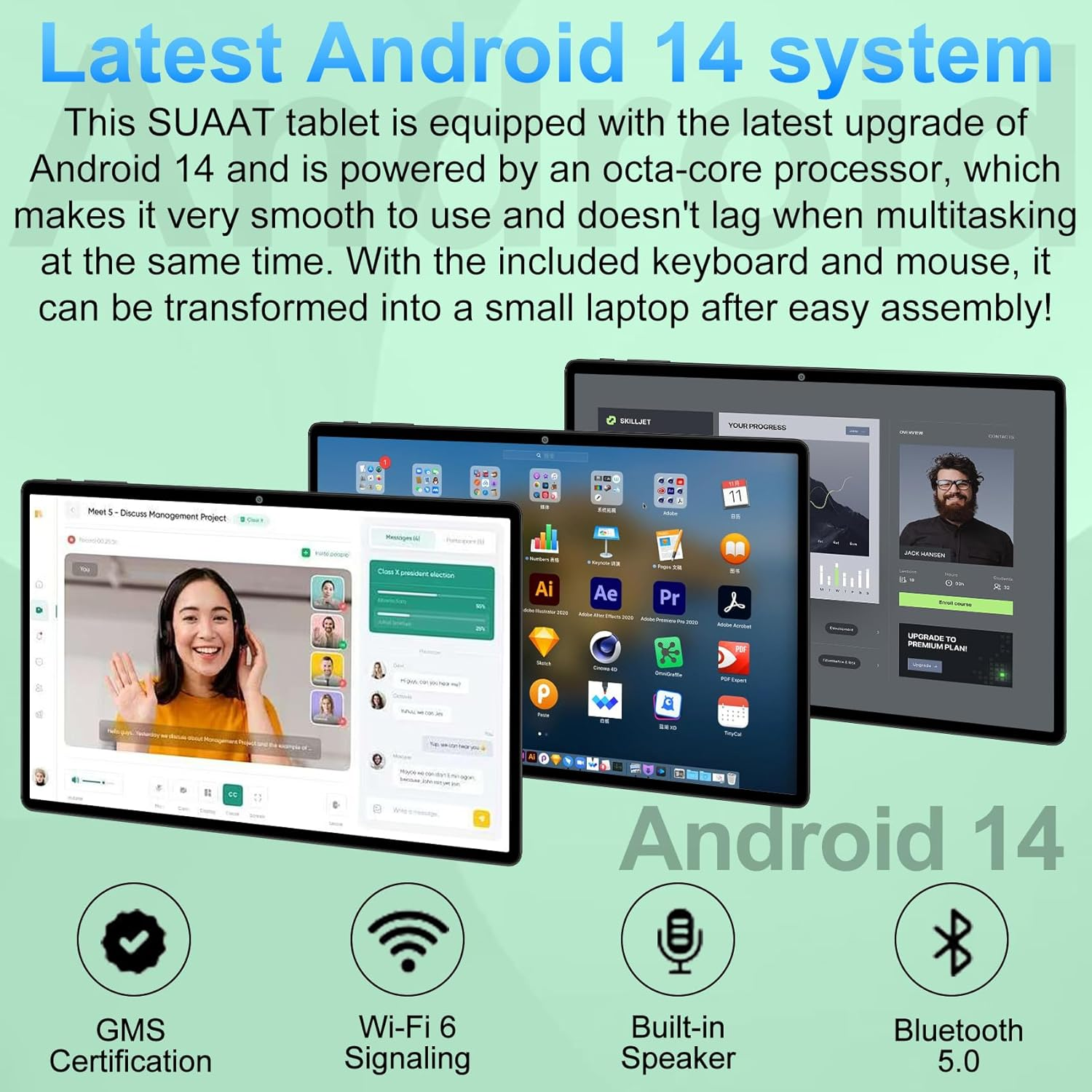 2025 UPGRADED MODEL: SUAAT Tablet is a fully upgraded Android 14 tablet with an octa-core processor clocked at up to 1.8GHz to ensure smoother operation, and improved privacy protection and security