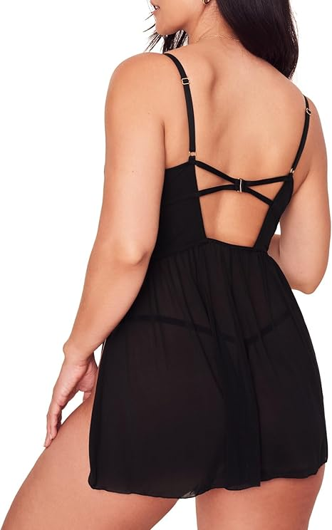 Adore Me Rae Babydoll Dress & G-String Thong - XS-4X Regular & Plus-Size Lace Lingerie Set, Underwire Plunge Bra & Thong