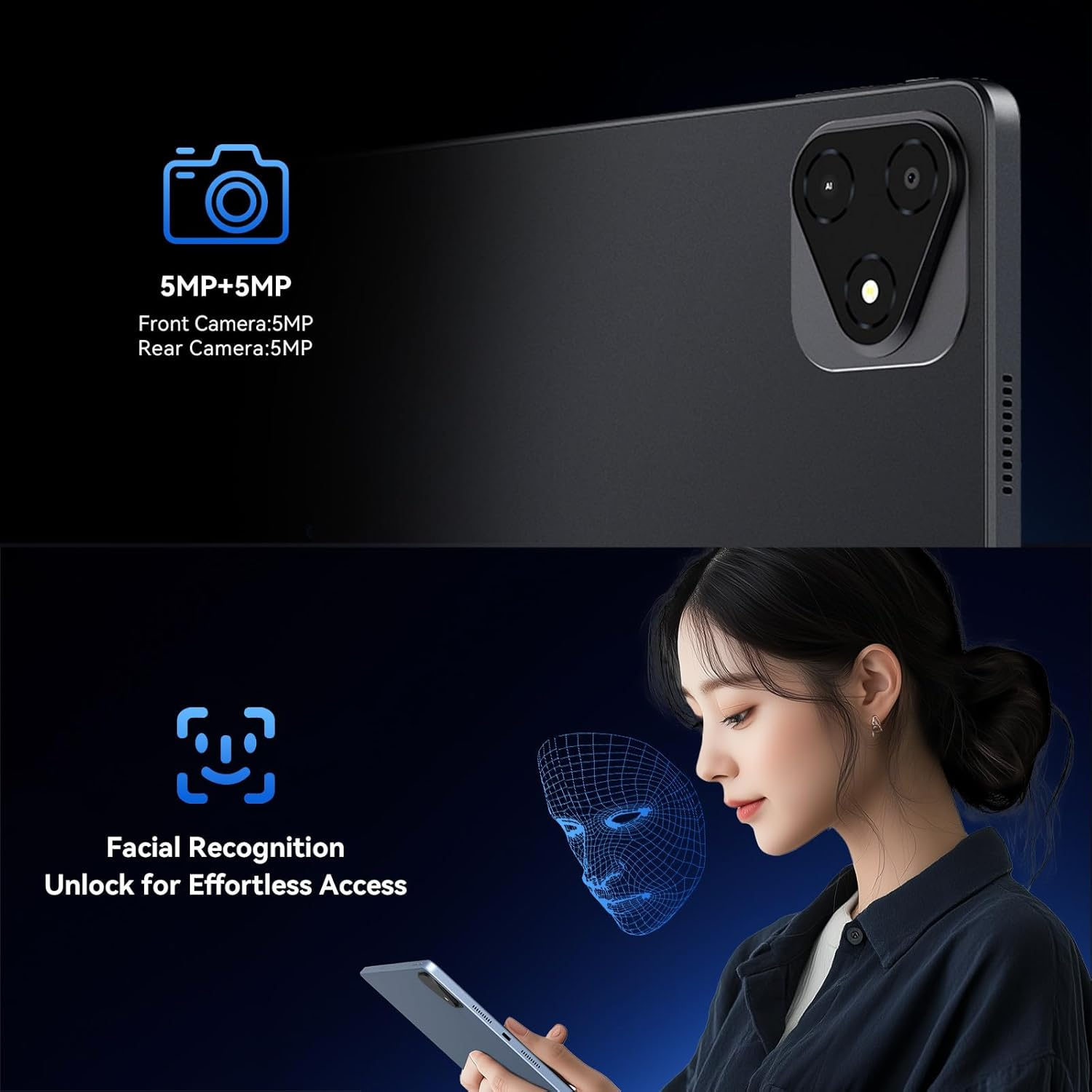 【11 Inch + 90Hz Reflex + Widevine L1 】The iPlay 60 Pro tablet has a large 11 inch IPS Incell screen with a WUXGA+ resolution of 1920 x 1200, which offers vibrant colours. With a 90Hz refresh rate, the tablet improves smooth and clear display compared to standard 60Hz screens. Besides, this Android 14 tablet is equipped with an ambient light sensor that automatically adjusts the brightness of the screen, giving you a more comfortable experience. It also supports Widevine L1, enabling high-quality streaming from services like Netflix (1080P), Amazon Prime Video, Hulu, and more.
