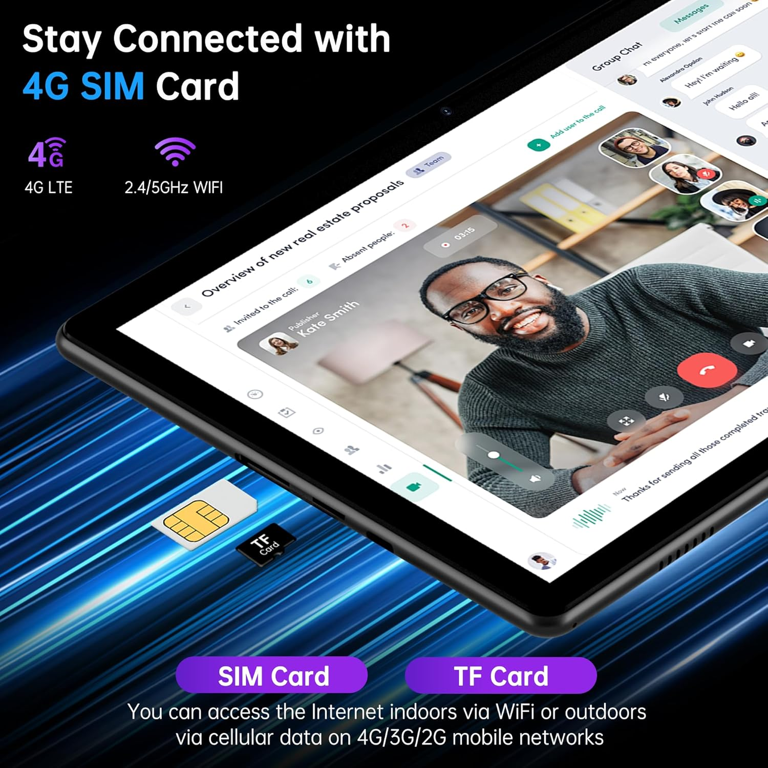 Android 14 Tablet with Sim Card Slot Unlocked Cellular Tablets 10GB+32GB Tablet with Protective Case 10 inch Tablet with GPS 2.0GHz Processor 8MP Camera and 1TB TF Expandable 2.4G/5G WiFi BT5.0