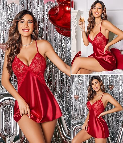 • Women satin nightgown, V neck babydoll, sexy lace lingerie set, halter chemise, spaghetti strap sleepwear is a wonderful gift for yourself or friends as sleepwear, nightwear, loungwear, pajamas. Perfect for Christmas party, Valentine’s Day, date nights, wedding nights, honeymoon nights, role play and lingerie party