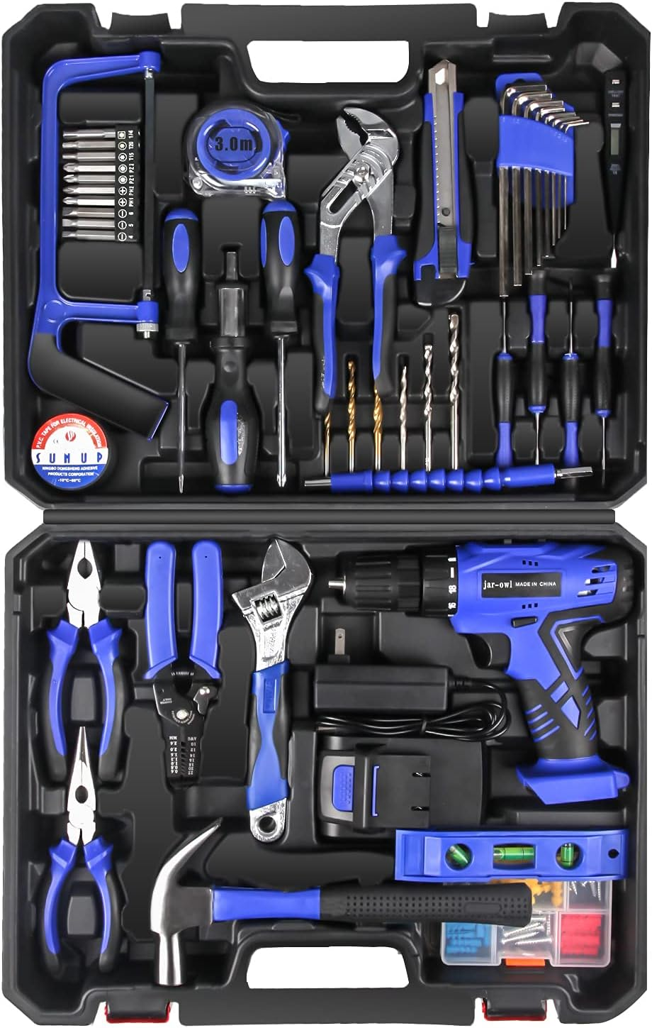 Bộ dụng cụ cầm tay để sửa chữa nhà cửa Bộ dụng cụ này hoàn hảo cho các công việc thủ công cũng như các nhiệm vụ xung quanh căn hộ của bạn. Nó có tất cả các công cụ bạn cần để lắp đặt đồ nội thất mới hoặc để khoan và treo đồ đạc xung quanh nhà. Nhiều loại công cụ và vật dụng, hoàn hảo cho bộ dụng cụ bắt đầu. Các công cụ được sản xuất từ hợp kim thép, mạ crôm để chống ăn mòn, với tay cầm thoải mái chống trượt.