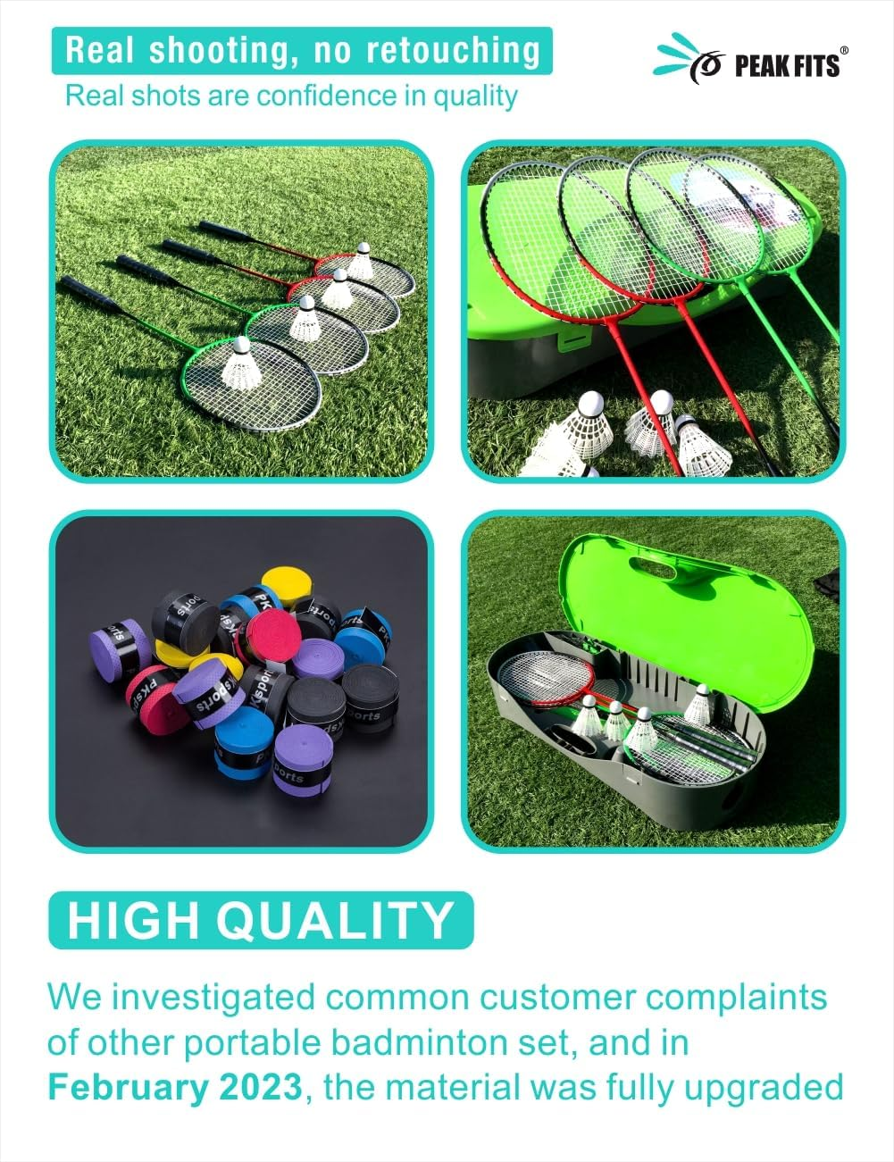 Bộ lưới cầu lông di động, Lưới cầu lông bóng chuyền gấp, 4 vợt cầu lông than chì chuyên nghiệp, 8 băng quấn cán vợt, 4 quả cầu lông, Trò chơi gia đình, Thể thao sân sau