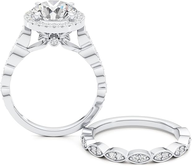 SỰ BÓNG BÓNG VÀ LẤP LÁNH ĐẸP MẮT - Viên đá trung tâm cắt tròn Moissanite 3 carat và viên đá bên tròn nuôi cấy trong phòng thí nghiệm 0,75 carat có màu DE, rất không màu và độ trong VS. Moissanite rất giống với kim cương tự nhiên và trên thang độ cứng Mohs, ở mức 9,25, là loại cứng thứ hai sau kim cương, là 10
