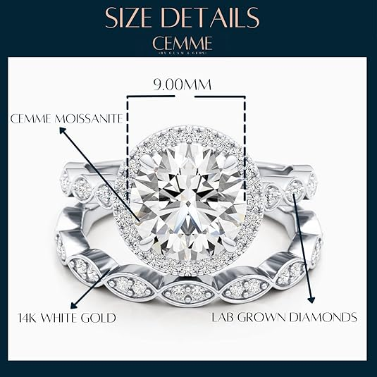 ĐỘ BÓNG BẮT MẮT BỀN LÂU - Những viên đá quý được sử dụng trên bộ nhẫn vĩnh cửu Cemme moissanite và kim cương nuôi cấy trong phòng thí nghiệm sang trọng này dành cho phụ nữ sẽ giữ được độ sáng bóng trong nhiều năm tới. Chiếc nhẫn được làm bằng vàng trắng nguyên khối 14k chắc chắn sẽ thu hút mọi ánh nhìn