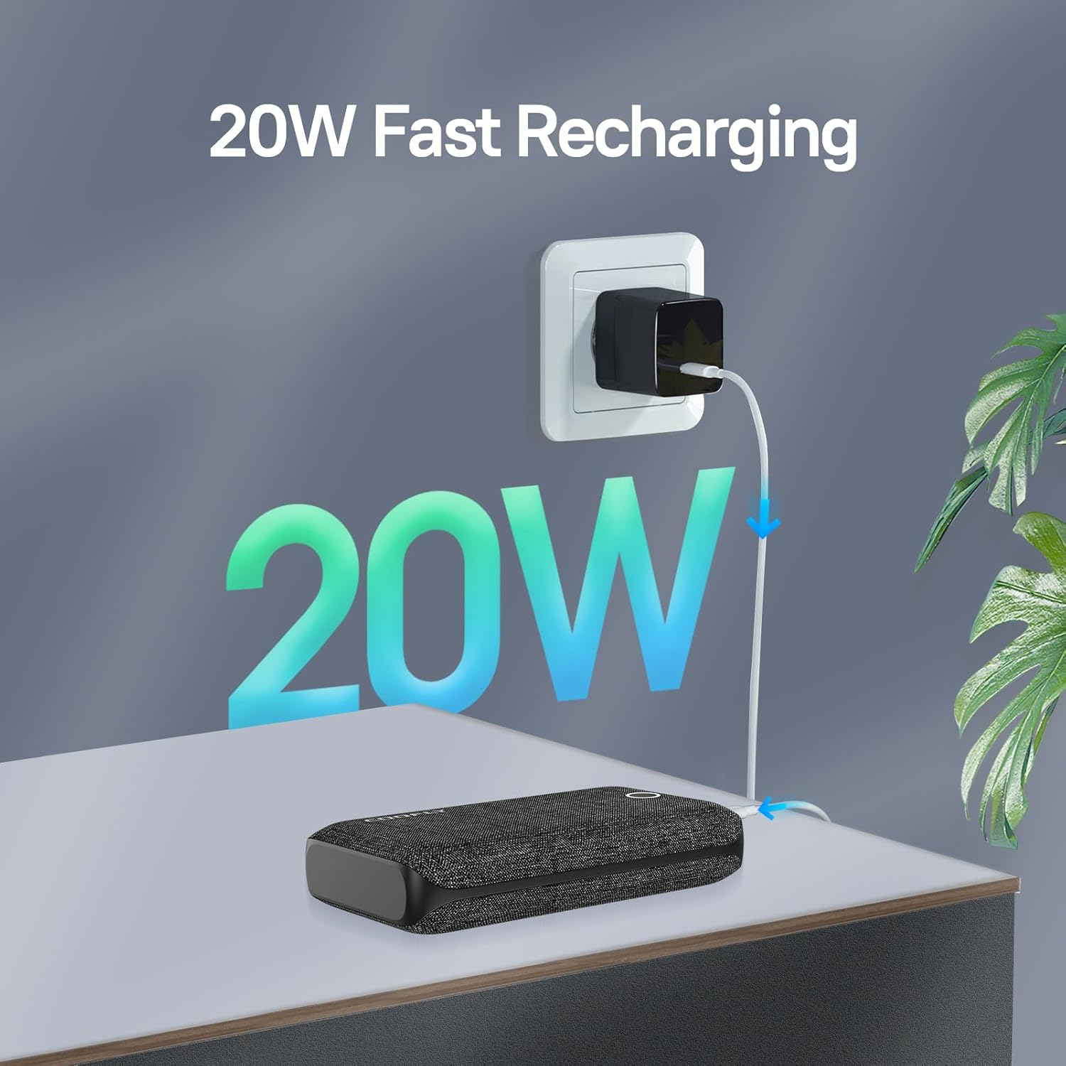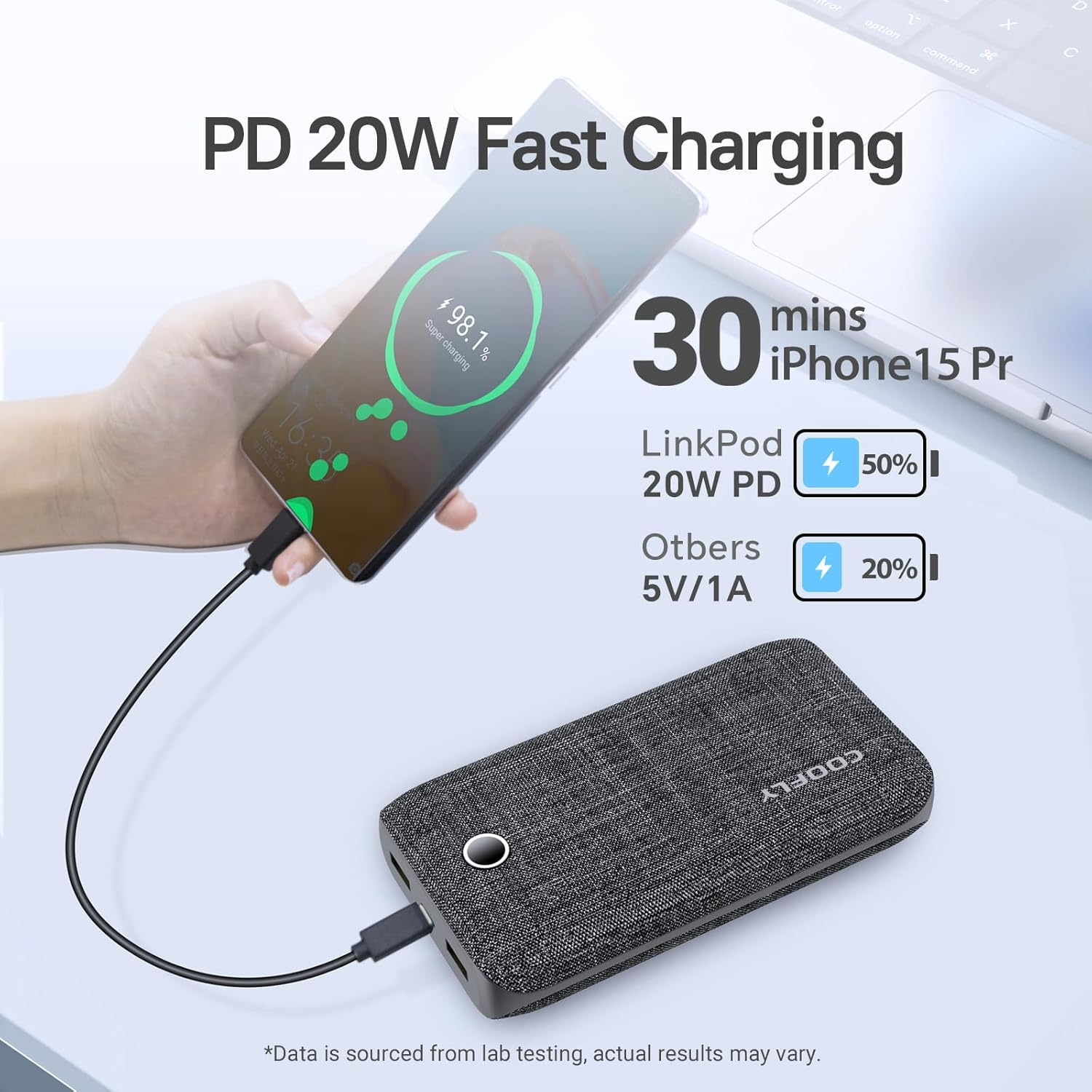 【Sạc siêu nhanh 20W PD】Pin dự phòng hỗ trợ đầu ra USB C tốc độ cao 20W PD, sạc iPhone 15 tới 50% chỉ trong khoảng 30 phút. Hỗ trợ bạn vào phút cuối.