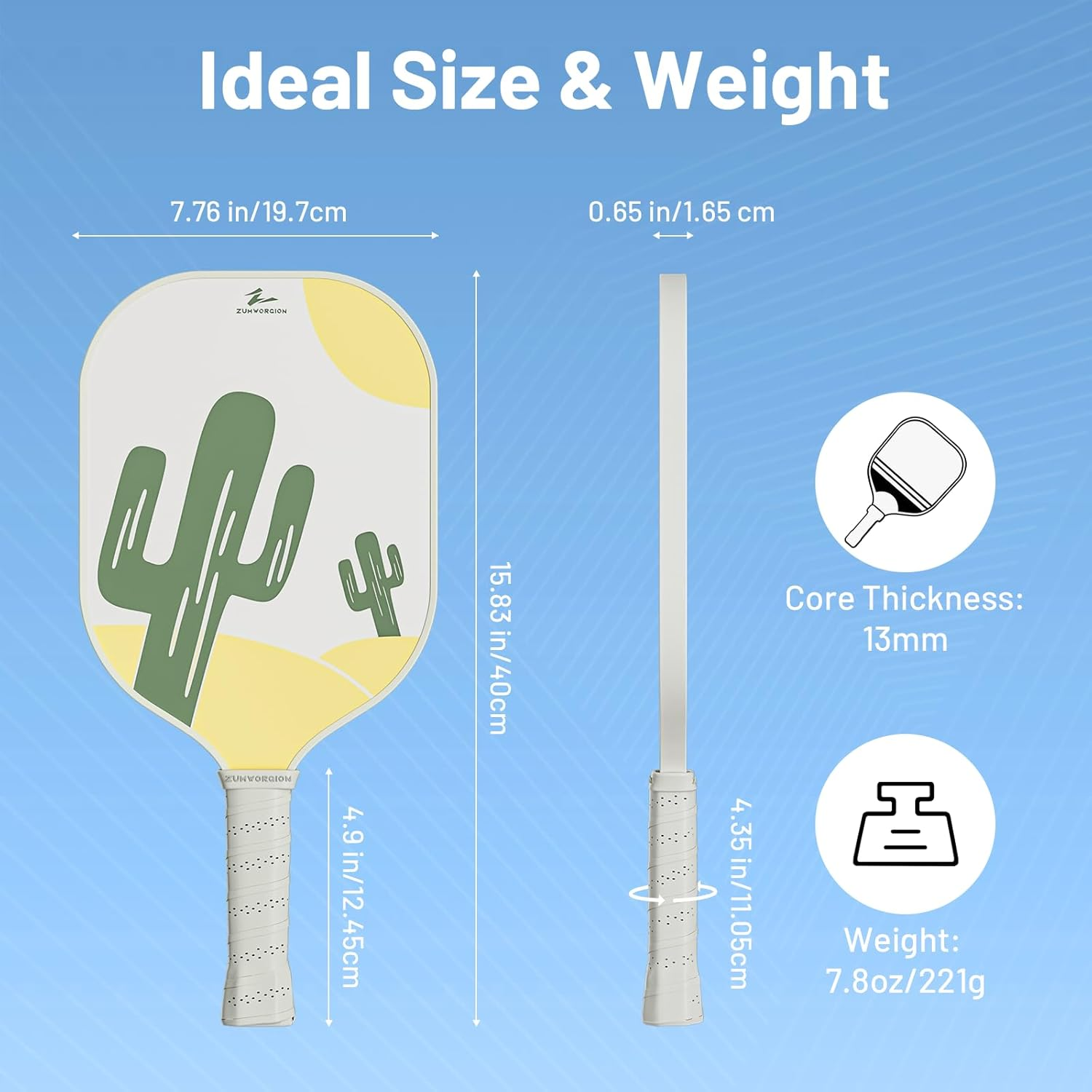 LIGHTWEIGHT DESIGN: Weighing only 7oz, these ZUMWORGION pickleball paddles are perfect for beginners and casual players.