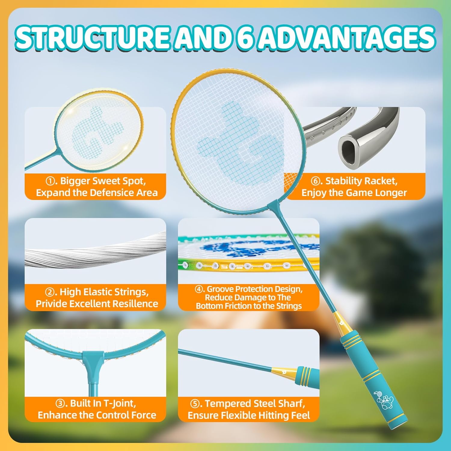 Pre-Strung Badminton Rackets with Optimal Tension: Each racket comes pre-strung for beginner to intermediate players, ensuring lasting tension and durability. Perfect for indoor or outdoor fun, this set makes a great gift for everyone