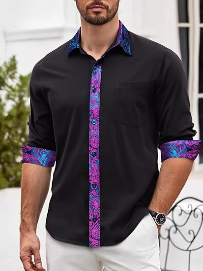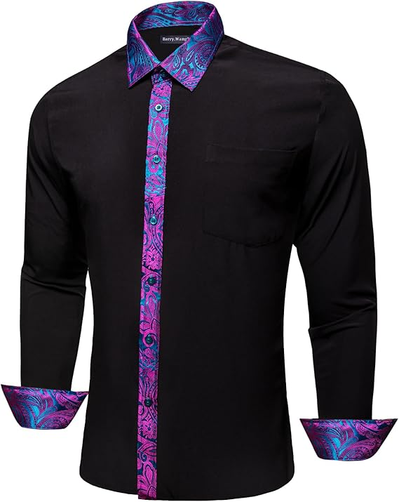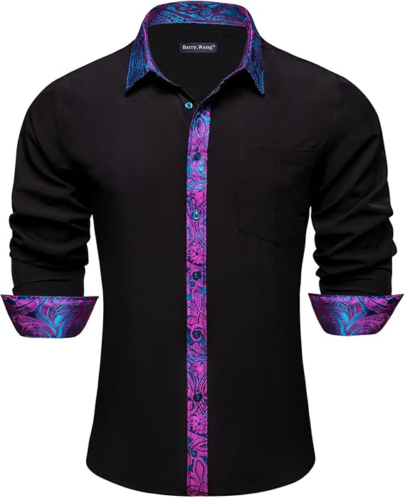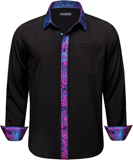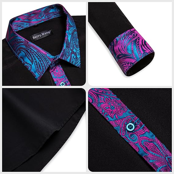 • Luxury Design-Barry.Wang exclusive design collared shirts offered by original designers.Fancy paisley floral and plaid embroidery over the collar/cuff/front edge.Unique look show your personality and good taste.Match suit or tuxedo as formal dress shirts,single wear without the jacket as casual shirts.
