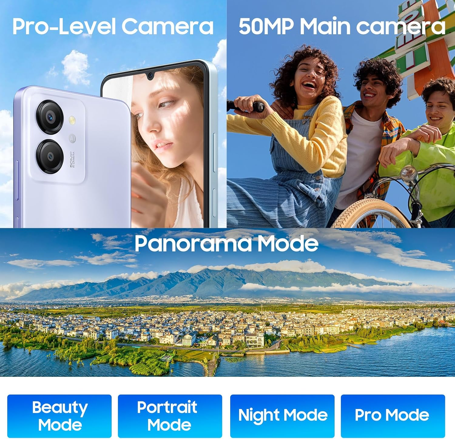 【50MP Camera & Smart ISO & Multiple Photo Modes】Capture stunning images with the JN1 camera, featuring a maximum resolution of 50MP. This smart phone also supports Smart ISO, delivering ultra-high resolution, high speed, and optimal color reproduction. In changing light, the ISOCELL JN1 sensor of COLOR 8 auto-adjusts its pixels, and Tetrapixel technology boosts low-light photos, helping users shoot like a pro. Experience 360° Panorama Capture, 1080P Video Recording with Beauty Mode, Night Mode, HDR, and more to stimulate your creativity in photography. The 8MP front camera, combined with a beauty selfie mode, captures ultra-sharp and bright photos.