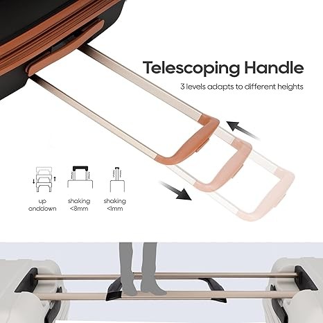 【Silent double row aviation big wheel】Silent & Smooth Multi-directional Spinner Wheels: Wheel and handle testing ensures luggage can withstand 50lbs of force from being dropped, roll for 20 Mile with 50lbs of pressure, can withstand temperatures as low as 5 degrees F.