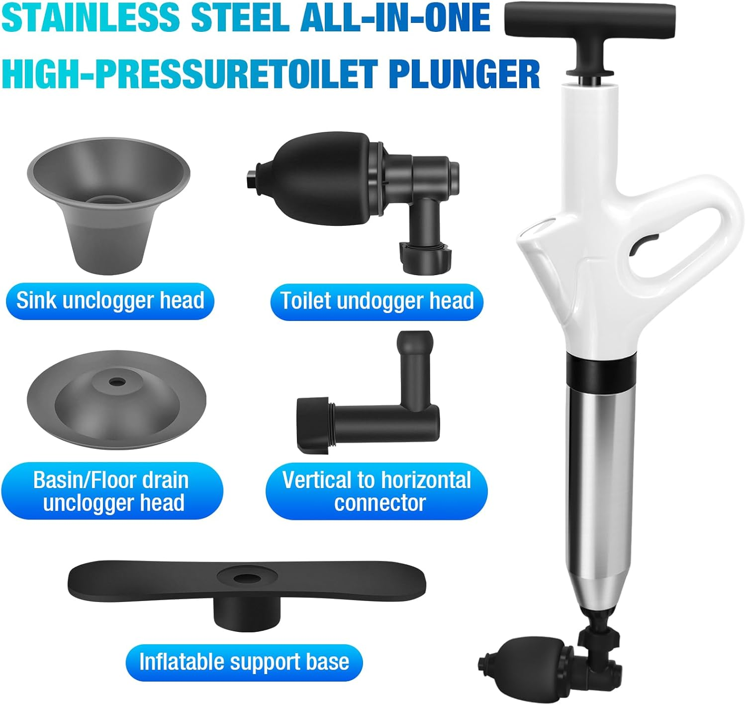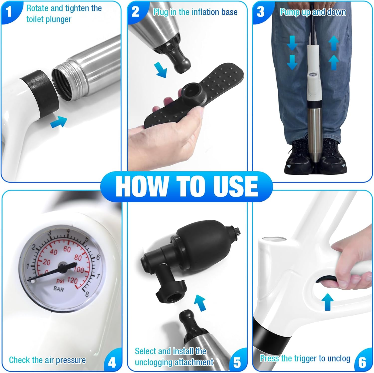 【Mẹo bổ sung】Trước khi sử dụng lần đầu, hãy đảm bảo vòng đệm và cột đỏ của pít-tông bồn cầu chịu lực được vặn chặt để tránh rò rỉ khí. Đối với hầu hết các trường hợp tắc nghẽn, hãy bơm căng pít-tông bồn cầu áp suất cao đến 4-5 Bar. Thực hiện theo hướng dẫn sử dụng một cách cẩn thận để có kết quả tối ưu.