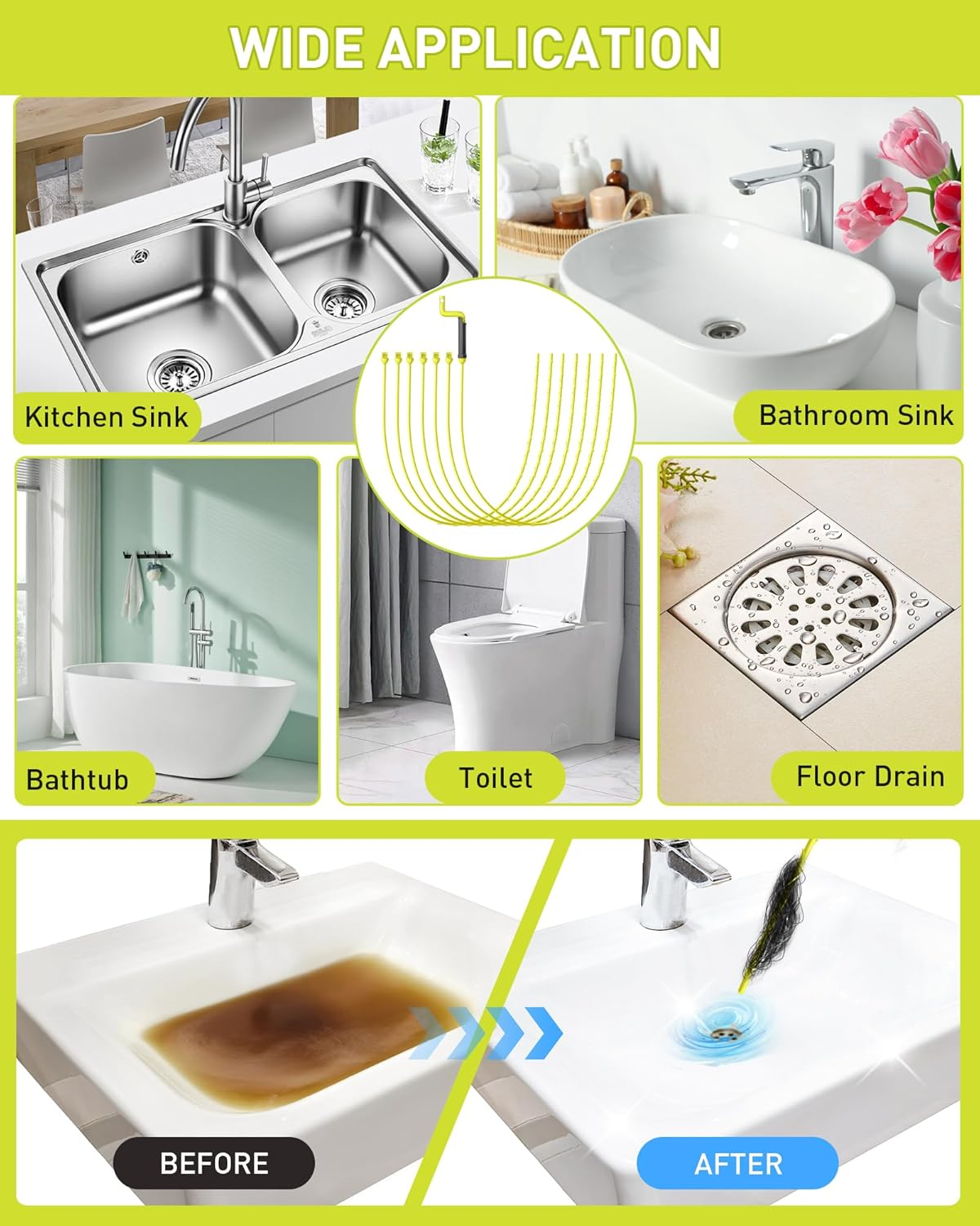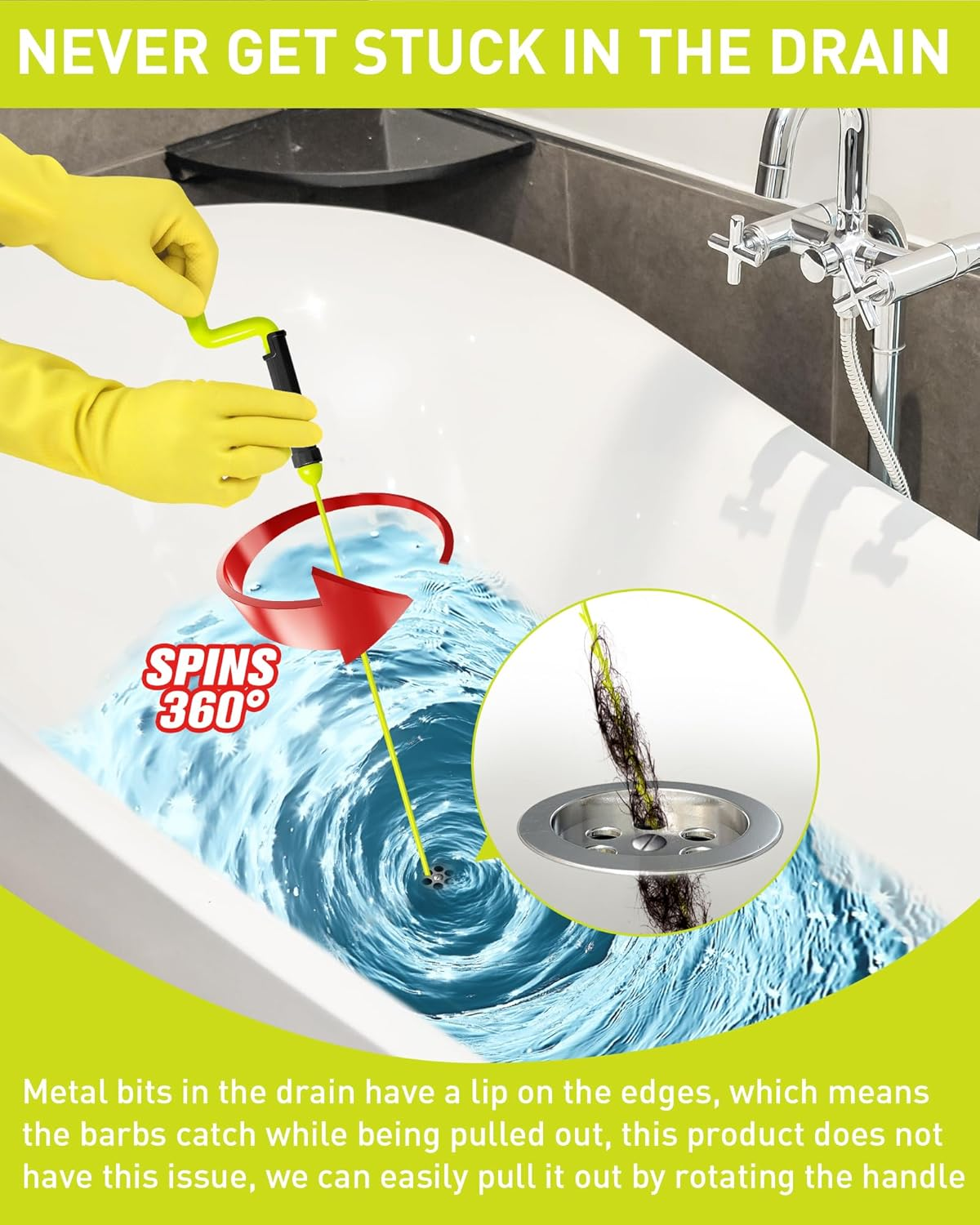 「Dễ sử dụng với ứng dụng rộng rãi」: Việc vệ sinh cống rãnh của bạn chưa bao giờ dễ dàng đến thế—chỉ cần lắp vào, xoay và kéo ra! Công cụ đa năng này hoàn hảo để thông tắc nghẽn trong bồn rửa mặt, bồn rửa nhà bếp, bồn cầu, bồn tắm, v.v., khiến nó trở thành một vật dụng thiết yếu trong bộ dụng cụ bảo dưỡng nhà cửa của bạn.