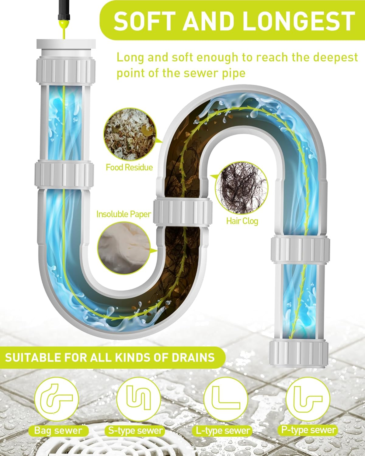 「Với phạm vi tiếp cận 35 inch siêu dài để thông tắc nghẽn sâu」: Được thiết kế để xử lý các tắc nghẽn khó tiếp cận, dụng cụ thông cống 35 inch này có thể đi sâu hơn các dụng cụ thông thường, loại bỏ hiệu quả các mảnh vụn cứng đầu khỏi đường ống của bạn. Hình dạng thanh mảnh của nó dễ dàng di chuyển qua các không gian chật hẹp, đảm bảo ngay cả những tắc nghẽn sâu nhất cũng được thông để dòng nước chảy thông suốt.