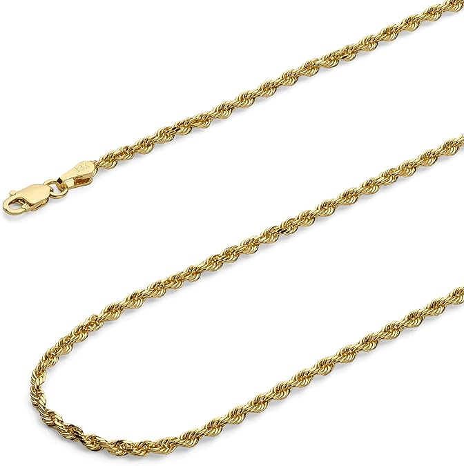 Dây chuyền kim cương cắt dây thừng 2mm bằng vàng thật 14k với móc cài càng tôm hùm - 22"