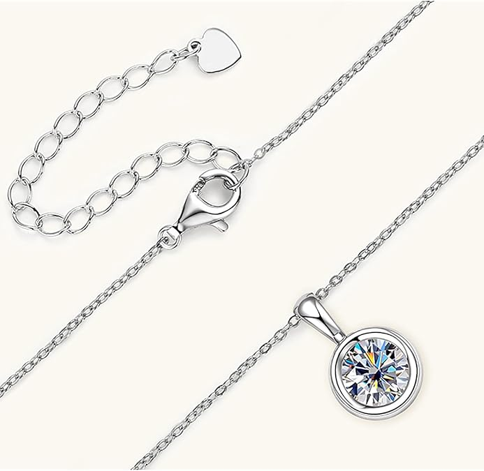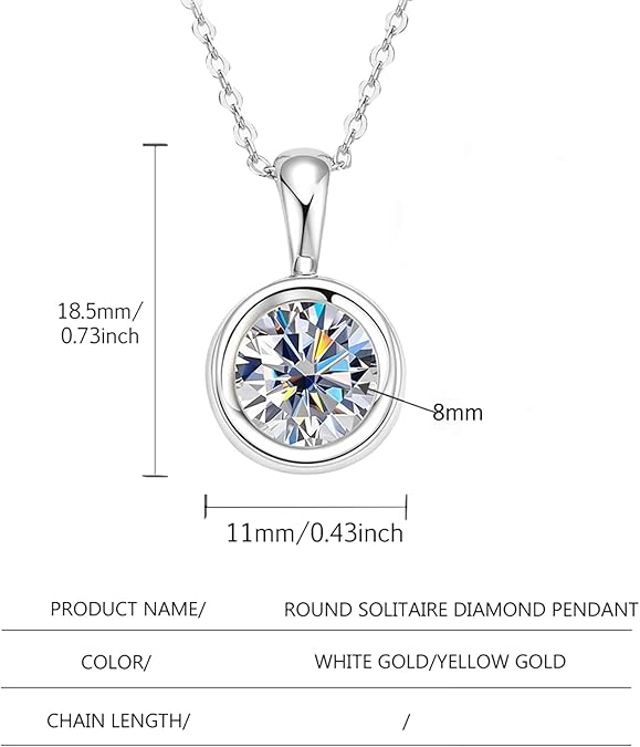 Thiết kế thẩm mỹ tinh tế: Thưởng thức vẻ đẹp thanh lịch vượt thời gian của chiếc vòng cổ của chúng tôi, với thiết kế tinh xảo kết hợp liền mạch nét quyến rũ cổ điển với nét quyến rũ hiện đại. Mặt dây chuyền tuyệt đẹp này có viên kim cương D-color cắt tròn 2ct VVS2 sáng bóng, toát lên sự tinh tế và thanh lịch.