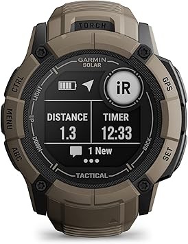 Garmin Instinct 2X Solar - Phiên bản chiến thuật, Đồng hồ thông minh GPS chắc chắn, Đèn pin tích hợp, Máy tính đạn đạo, Khả năng sạc năng lượng mặt trời, Coyote Tan