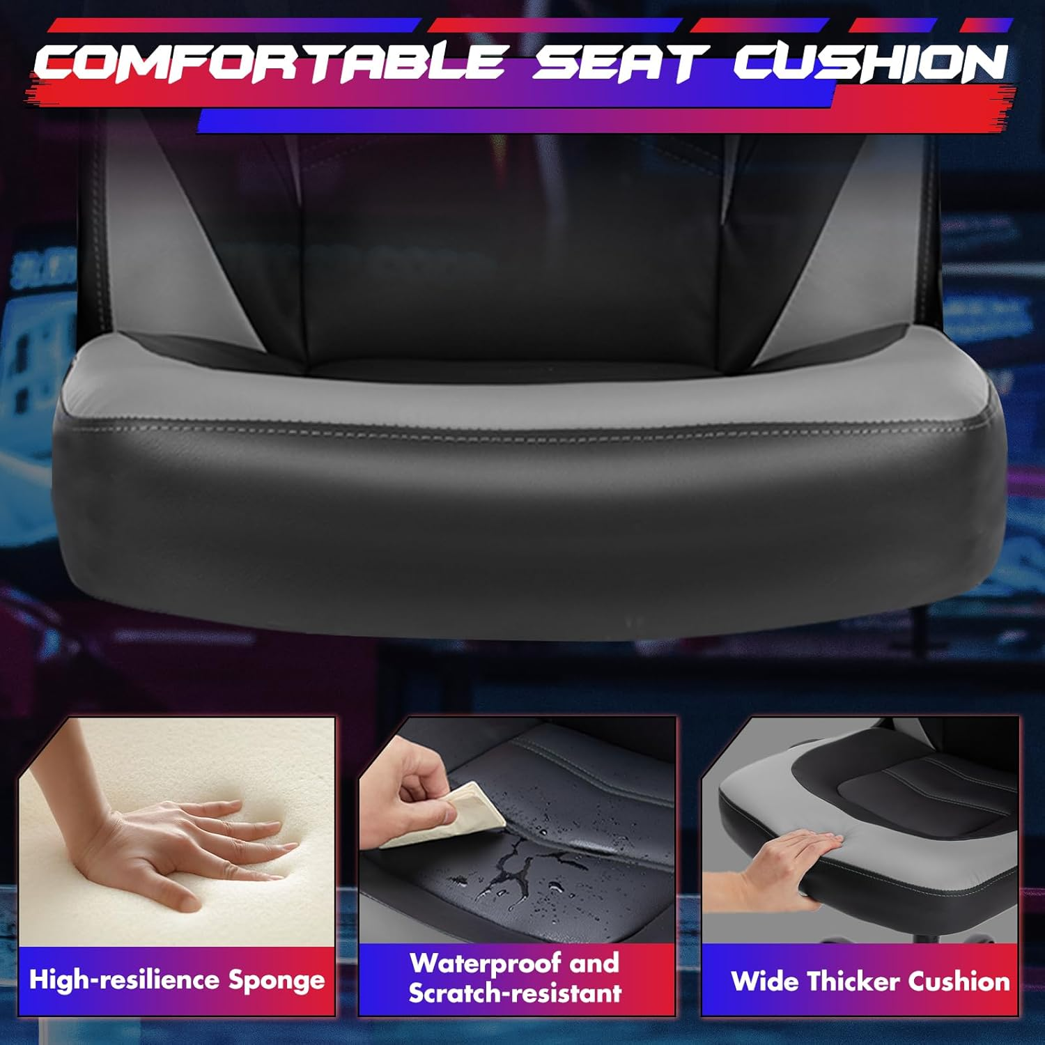 Ghế chơi game máy tính Sweetcrispy - Da PU công thái học với hỗ trợ thắt lưng thoải mái, Bàn lăn có thể điều chỉnh độ cao với tay vịn lật lên, dành cho gia đình và văn phòng