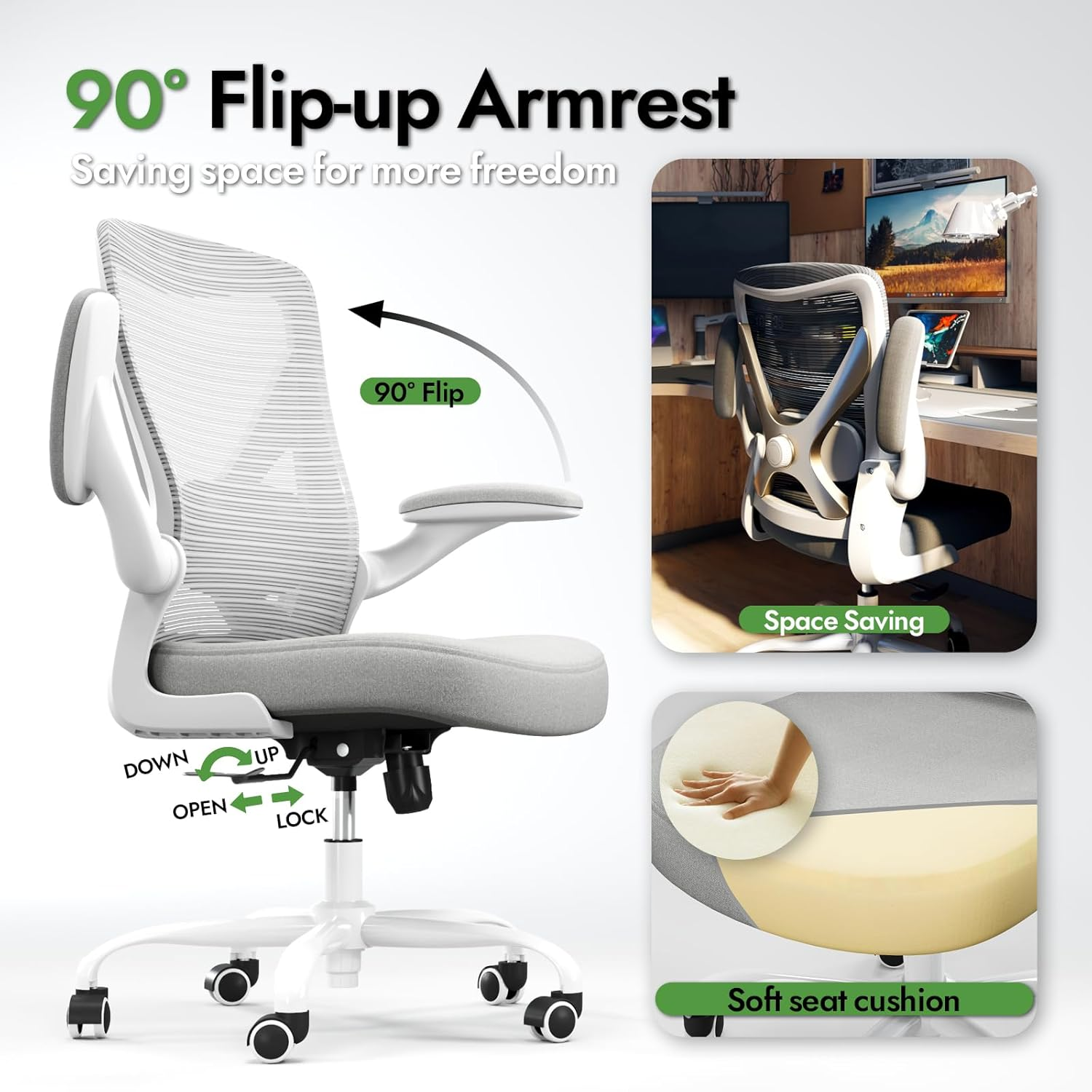 Tính di động tiện lợi: Đế xoay 360° của ghế cho phép xoay cơ thể dễ dàng khi ngồi. Bánh xe lăn êm ái di chuyển trơn tru theo mọi hướng, lý tưởng cho sàn cứng. Tận hưởng tính di động êm ái và thoải mái trong không gian văn phòng của bạn. Có thể sử dụng làm ghế văn phòng cho sinh viên, ghế máy tính, ghế công thái học, ghế làm việc và ghế chơi game