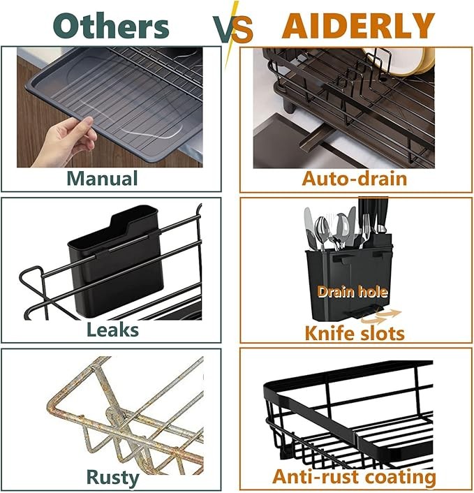 Easy to Assemble: Packed with racks, water collector tray, utensil holder, knife slot, and drainage board feet, only took 5 minutes or less to get it all put together, no extra tools needed
