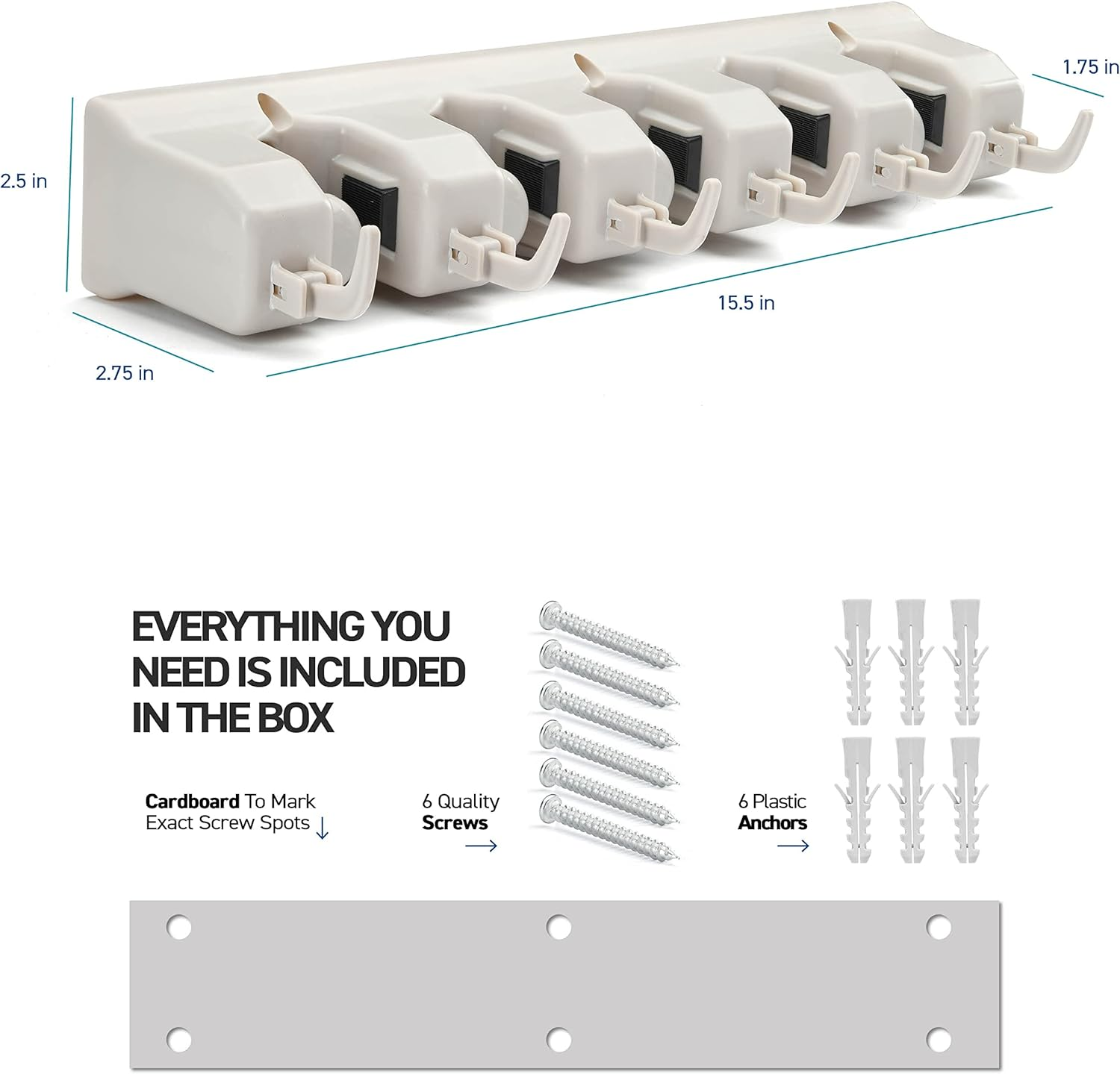 Giá treo chổi và cây lau nhà Home-it gắn tường, giá để dụng cụ làm vườn, giá để đồ lưu trữ và sắp xếp cho gia đình, giá treo bằng nhựa cho tủ quần áo, nhà để xe (5 vị trí)