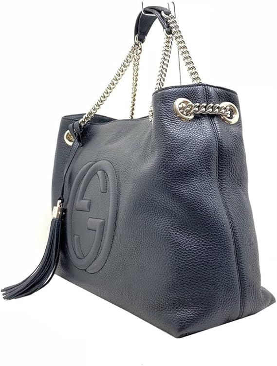 Gucci SOHO Black GG Logo Leather Chain Tote Bag Style