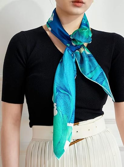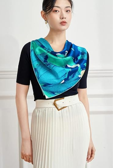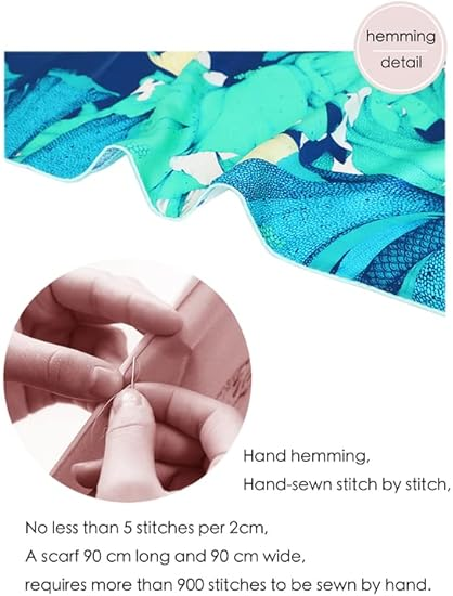 Features, mulberry silk scarf, square scarf, size length 35.4 in, width 35.4 in, oriental printing, hand hemming, daily, vacation, dinner, the party is also suitable. & Hand hemming, hand-sewn stitch by stitch, no less than 5 stitches per 2cm, a scarf 90cm long and 90 cm wide, requires more than 900 stitches to be sewn by hand.