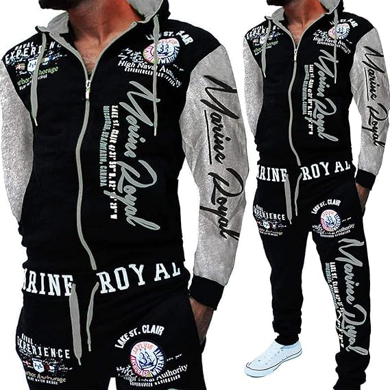 HHGKED Men 's Casual Tracksuit Hooded Full Zip Elastic Waistband Sweatsuit Set
