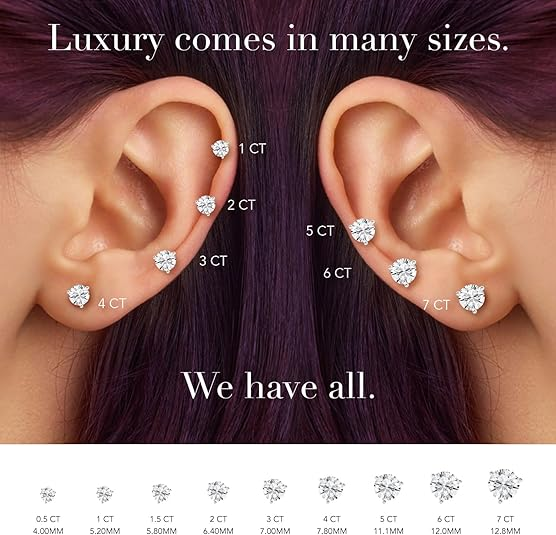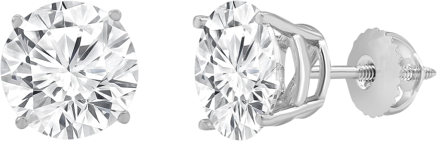 Hoa tai kim cương Solitaire 1,00 đến 6,50 carat dành cho nữ | Hoa tai kim cương nhân tạo cắt tròn | Hoa tai vàng trắng 14K có chốt vặn | Trang sức cao cấp dành cho cô ấy | Có hộp quà tặng