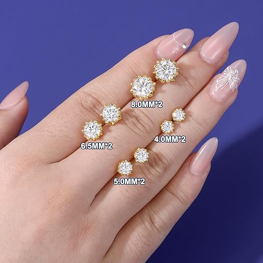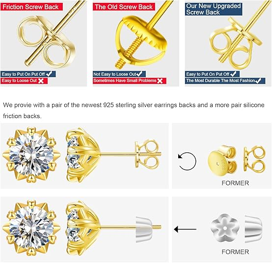【Ma sát & Vít phía sau】Đai khuyên tai moissanite có vít phía sau, dễ đeo và tháo, không lo hoa tai rơi ra hoặc dễ bị mất. Các trụ khuyên tai được hàn chắc chắn và không dễ bị cong. Không gây gánh nặng cho tai của bạn, có thể đeo trong bất kỳ dịp nào, dù là sự kiện buổi tối trang trọng hay trang phục thường ngày, không bao giờ lỗi mốt. Bên cạnh đó, chúng tôi cũng đã chuẩn bị một cặp nút đẩy bằng silicon. Nếu bạn thích nút đẩy hoặc vô tình làm mất nút vặn, chúng có thể được sử dụng làm phụ kiện dự phòng.