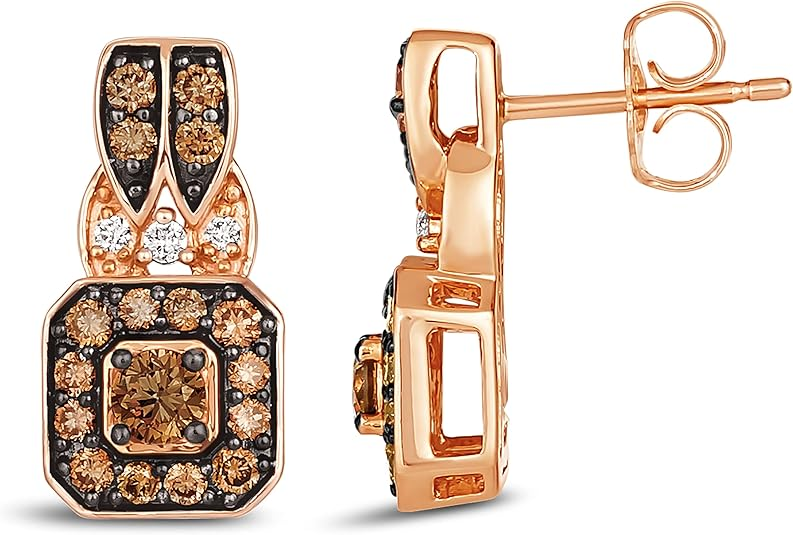 SỰ THANH LỊCH KHÔNG THỂ NHẦM LẶNG - Đôi hoa tai thả bằng vàng hồng 14k thủ công quyến rũ này của Le Vian có kim cương trắng và nâu 3/4 carat. Đôi hoa tai thả này có chốt ma sát và mặt sau hình cánh bướm để đeo thoải mái và an toàn suốt cả ngày. Đôi hoa tai nổi bật này là món đồ trang sức tinh tế mà bạn đang tìm kiếm