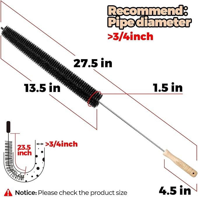 • Pure wood handle (4.5 in), long and flexible stainless steel wire shaft (27.5 in), sturdy and thick bristles (13.5 in); Good working performance and quality guaranteed
