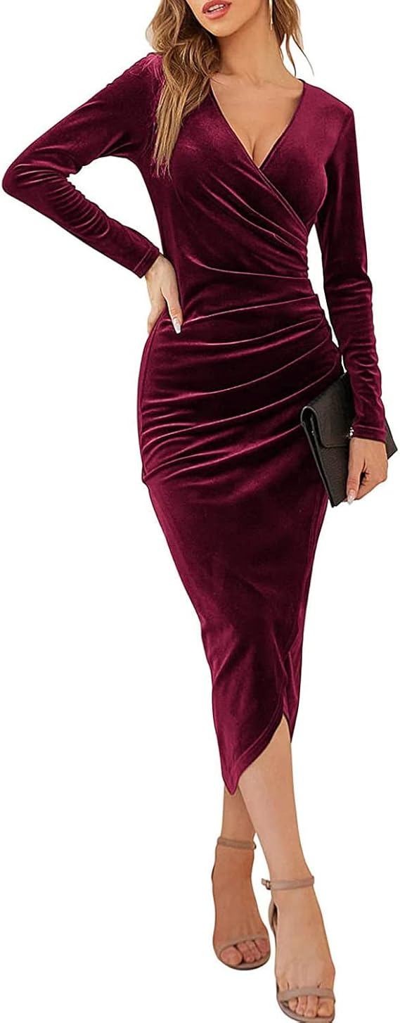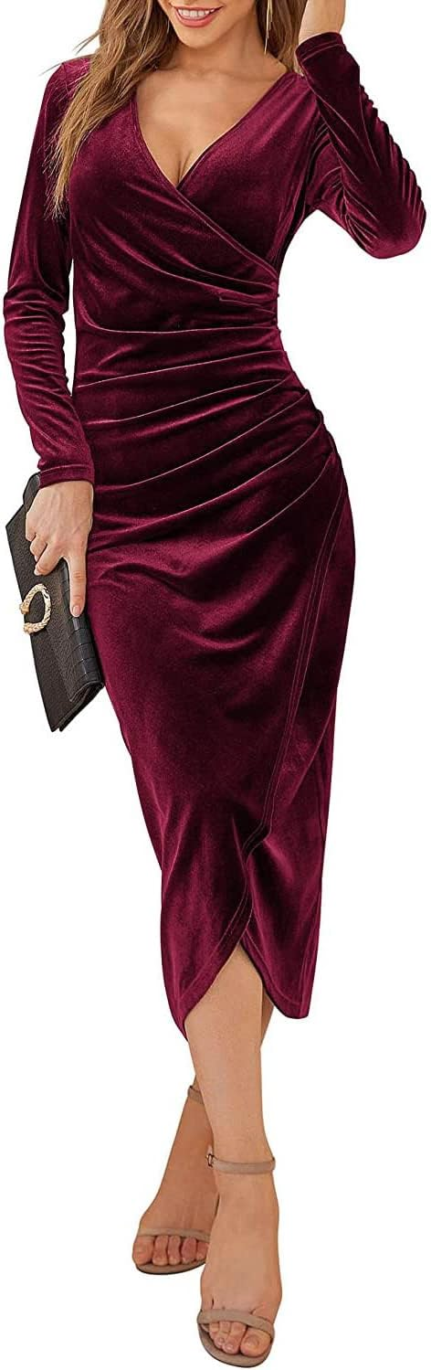 Đặc điểm: Đây là phiên bản 2.0 của váy nhung, nhà thiết kế của chúng tôi đã tối ưu hóa kích thước và độ dài của váy để toàn bộ váy vừa vặn hơn và tôn lên vóc dáng của bạn. Thiết kế cổ điển độc đáo, váy nhung co giãn nhẹ với cổ chữ V, chống nhăn, ôm sát và thanh lịch, vừa vặn và gợi cảm với hầu hết các dáng người.