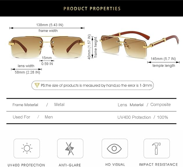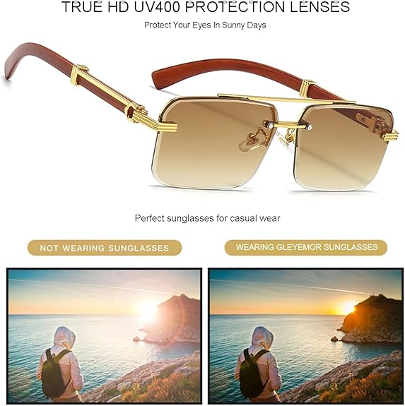 BẢO VỆ TIA UV 100% – Tròng kính hình chữ nhật GLEYEMOR được xếp hạng UV400, nghĩa là nó có thể chặn bức xạ UVA và UVB. Kính râm được xếp hạng UV400 rất cần thiết để bảo vệ mắt bạn khỏi tác hại lâu dài của tia UV, giúp tầm nhìn của bạn rõ ràng hơn nhiều và bảo vệ mắt bạn hoàn hảo.