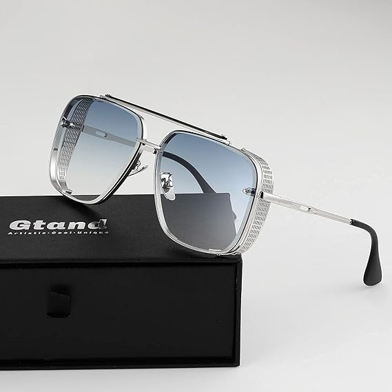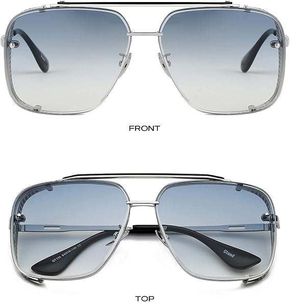 Kính mát phi công vuông cỡ lớn Gtand Fashion Gradient dành cho nam, mặt kính kim loại cổ điển, kính râm Steampunk 64mm