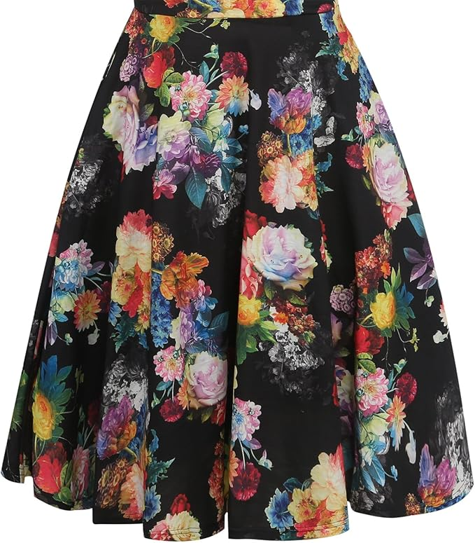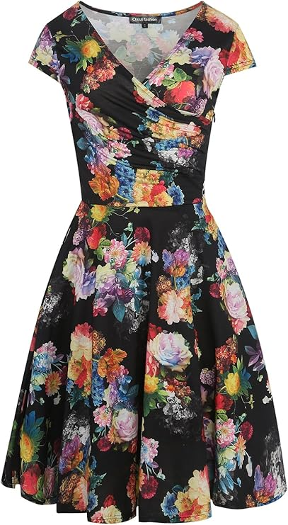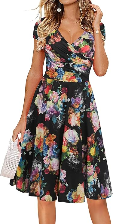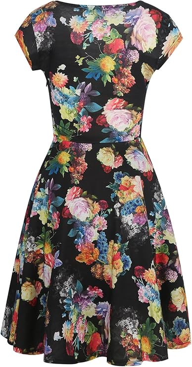 Đầm xòe dự tiệc cocktail cổ chữ V tay lửng họa tiết hoa màu đen cổ điển dành cho nữ