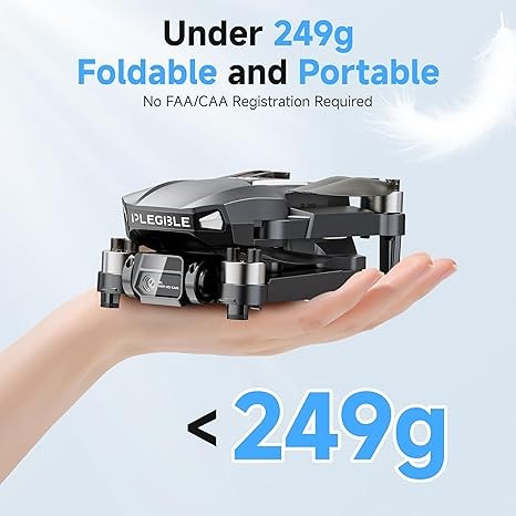 Ultra-lightweight, No FAA or Remote ID Registration Required: PLEGBLE PL511 is an motor drone with 4K camera, featuring the latest design and weighing less than 250 grams. This FPV drone is the perfect solution for worry-free flying in the United States, requiring no FAA or remote ID registration. It's the ideal choice for capturing wonderful shots anytime.