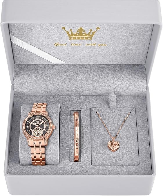 ★Delicate Gift Set: The set contains a lady's watch, a rose gold bracelet and a necklace. Suitable for women of all ages to wear. It is the best gift for ladies as gifts for Mother's Day, Valentine's Day, Christmas, birthday, anniversary.