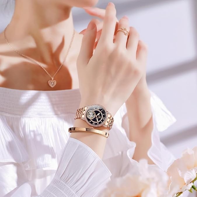 ★Women's Automatic Watch: The original mechanical movement to support the automatic self-winding. Super long standby, is the best choice to accompany you to travel and attend important occasions.