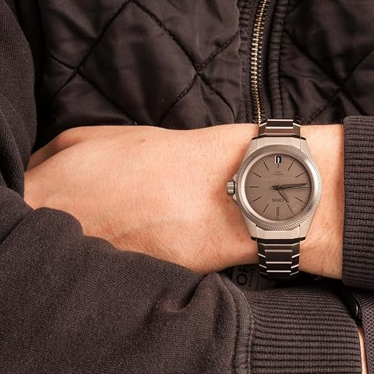 Vỏ: Titanium (39mm) có vành cố định, mặt sau trong suốt và tinh thể sapphire chống xước