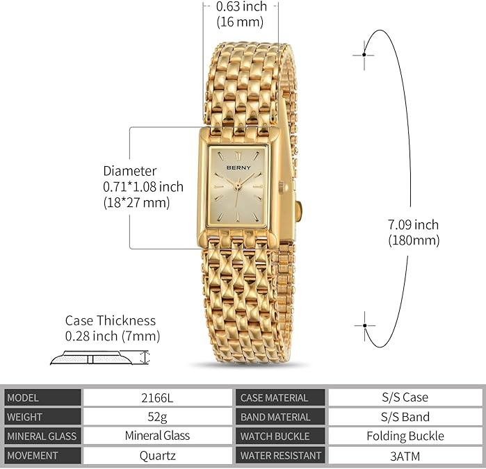 Dainty Womens gold watches with high quality: Imported Japanese quartz movement, provides precise and accurate time keeping. Square watches for women with mineral glass protects watch from scratches, long lasting stainless steel band and case, provides excellent wearing experience.