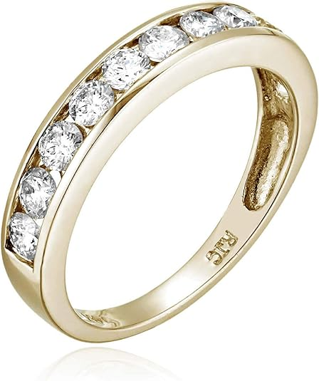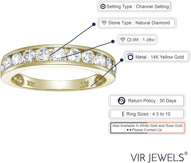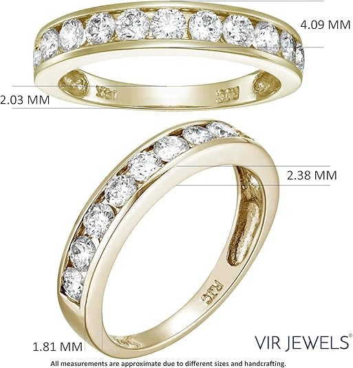 Nhẫn kỷ niệm ngày cưới kim cương 1cttw cho nữ Nhẫn đính hôn kim cương vĩnh cửu nửa vàng 14K Bộ kênh cỡ 4,5-10