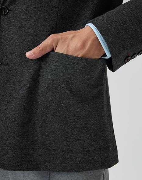 • Premium Fabric: Step into sophistication with our sumptuous blend of 68% rayon, 28% nylon and 4% spandex for the shell of men’s blazer, paired with 100% polyester lining. This double-sided knit fabric boasts a textured finish that exudes elegance and style