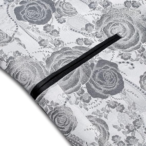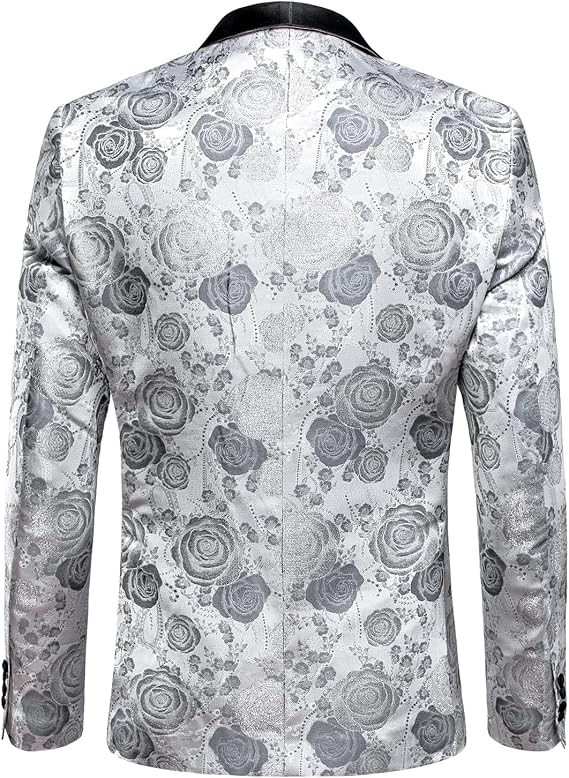 Design:Fashion Floral suit jacket, with elegant contrast color shawl lapel, two front pockets, one chest pocket, one button closure,slim fit. Unique embroidered pattern make the jacket luxury and decent.The Luxury tuxedo blazer could be matched with dress shirt, necktie or bowtie, black dress pants or skinny suit pants for a more stylish and catch the attention in the crowd.