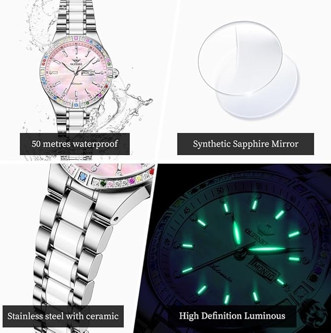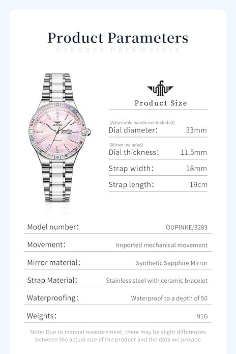 OUPINKE Mechanical Movement: The original mechanical movement to support the automatic self-winding, accurate when walking. With a service life of more than 2 years, it is a good choice to accompany you through important moments.