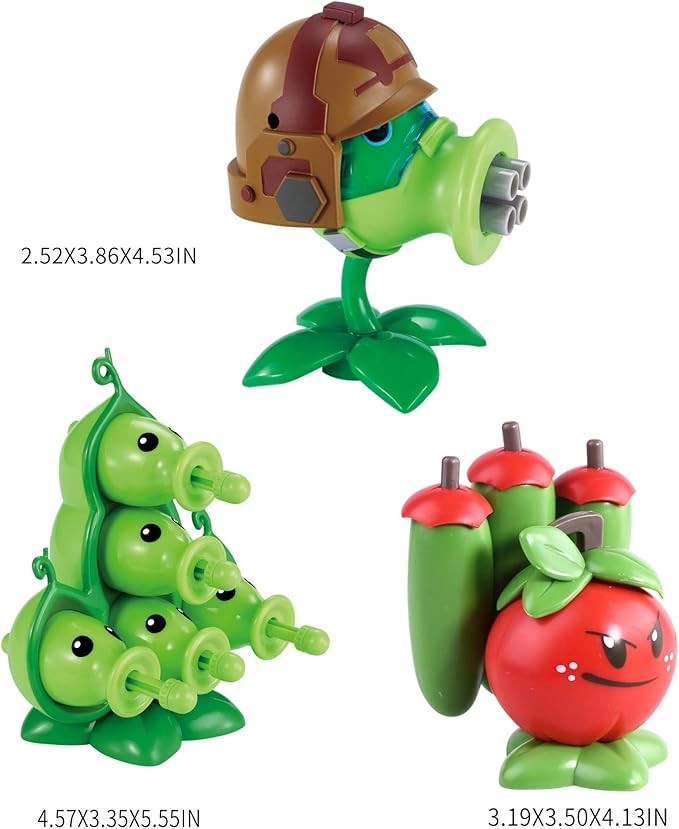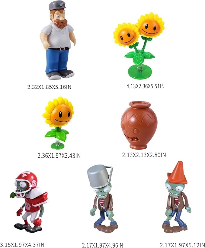 The Right Size Toy for Everyone - This plant versus zombie toy set has a variety of plants and zombies including Zomboss and Gargantuar. The Peashooter is 3.5in x 3.5in; the zombie is 5.1in x 2.0in. This toy is for kids (3+), teenagers and adults of all ages that are interested in the Plants versus Zombies game.