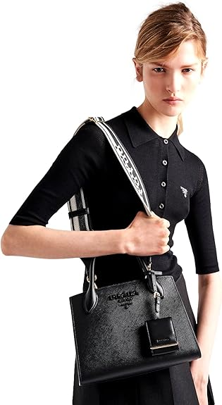 Prada Saffiano Leather Tote Bag, Top Handle, Crossbody, Black