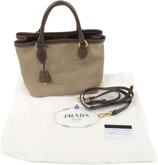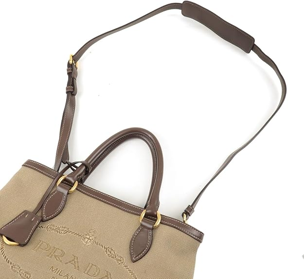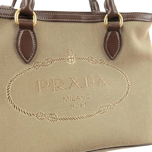 This Prada Women's Brown canvas Bauletto Handbag is luxurious and practical.