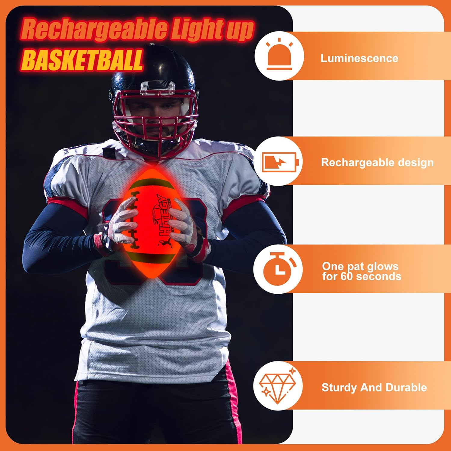 • Instant Fun: The Light Up Football is designed for convenience and durability, featuring a lithium battery that's built to last. Simply charge it up using any standard USB cable, and you're ready for a night of football filled with excitement. The ball's LED lights will brightly illuminate the field, turning every catch and pass into a highlight of the night. With the included spare lithium battery, you can swap it out when one set starts to fade, ensuring the games continue to shine on.